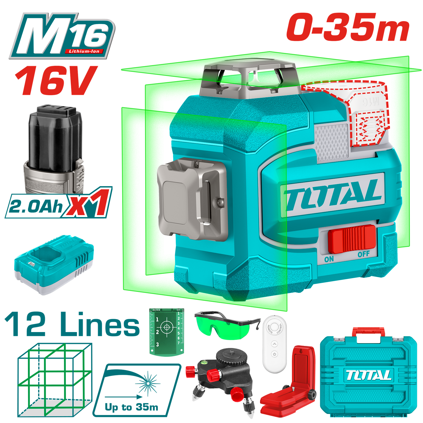 TOTAL 3D CORDLESS LASER LEVEL 16V (TLL301201)
