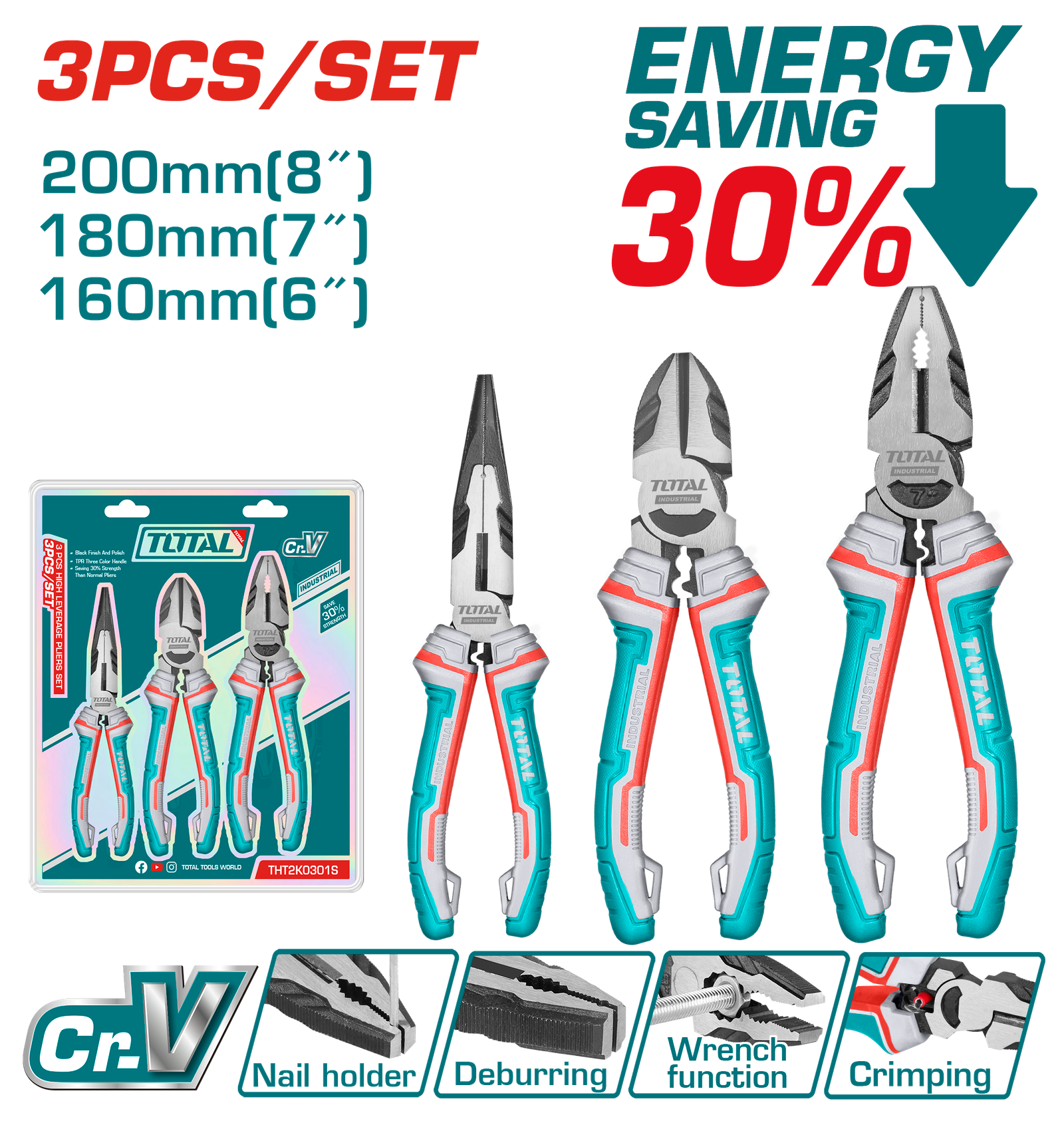 TOTAL 3PCS PLIERS SET (THT2K0301)