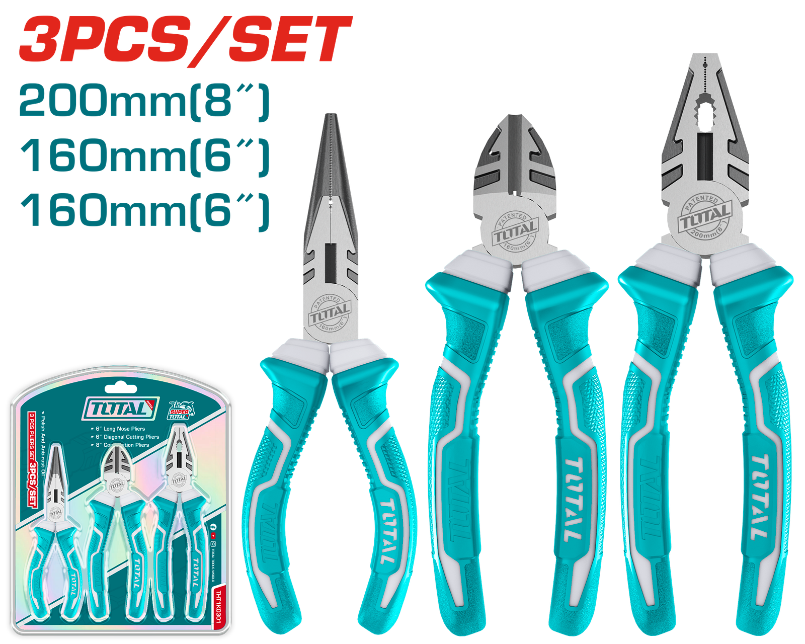 TOTAL 3PCS PLIERS SET (THTIK0301)