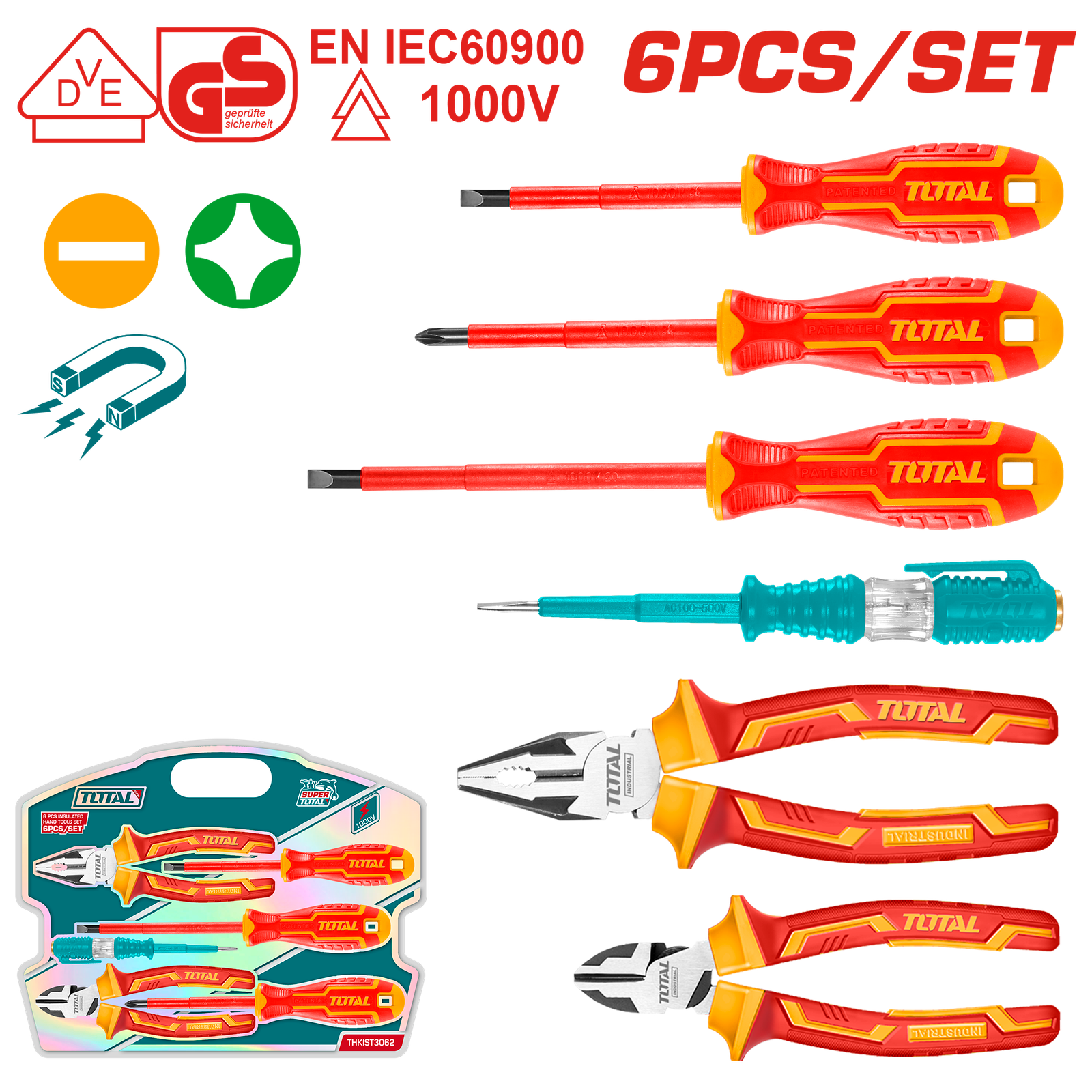 TOTAL 6PCS HANDTOOLS SET 1000V (THKIST3062)